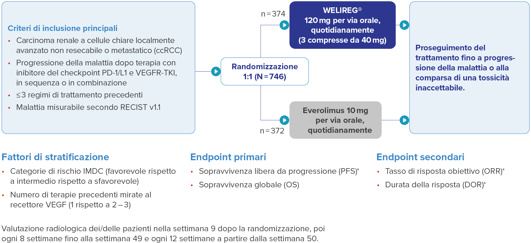 L’efficacia e la sicurezza di WELIREG® rispetto all’everolimus sono state studiate nello studio di fase 3 LITESPARK-005.1,2