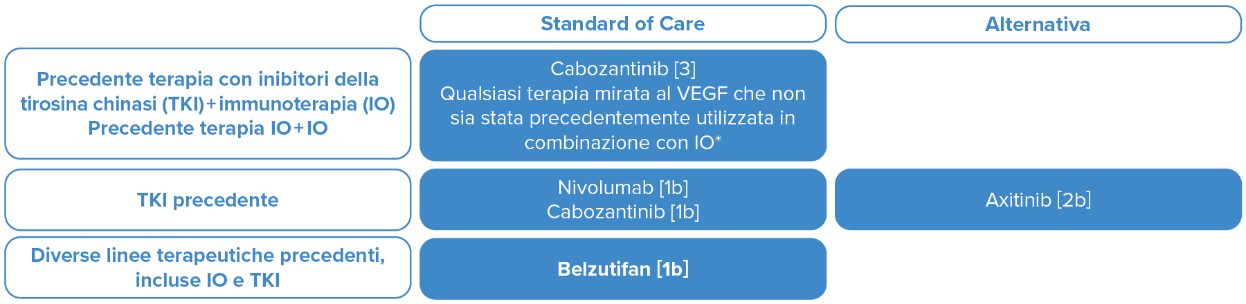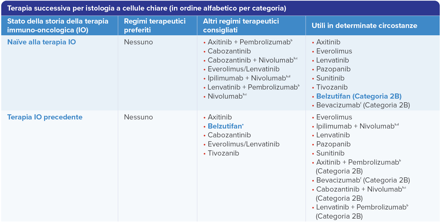 e. Questa terapia è indicata per pazienti che hanno ricevuto un inibitore della proteina 1 della morte cellulare programmata (PD-1) o del ligando 1 della morte programmata (PD-L1) e un inibitore della tirosin-chinasi del fattore di crescita endoteliale vascolare (VEGF-TKI).