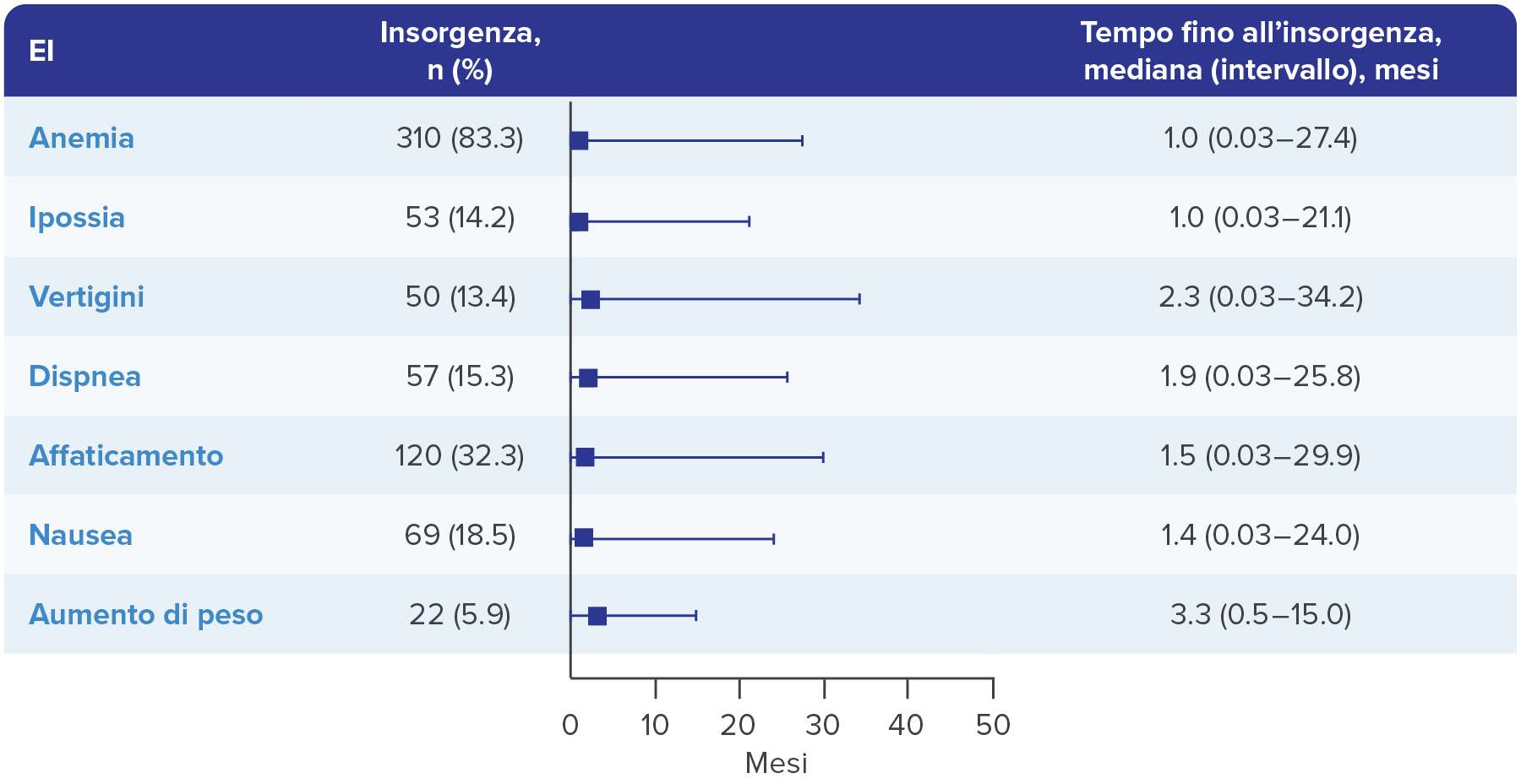 *** Le statistiche sulla durata degli eventi indesiderati si basano sul metodo Kaplan-Meier per i dati censurati.